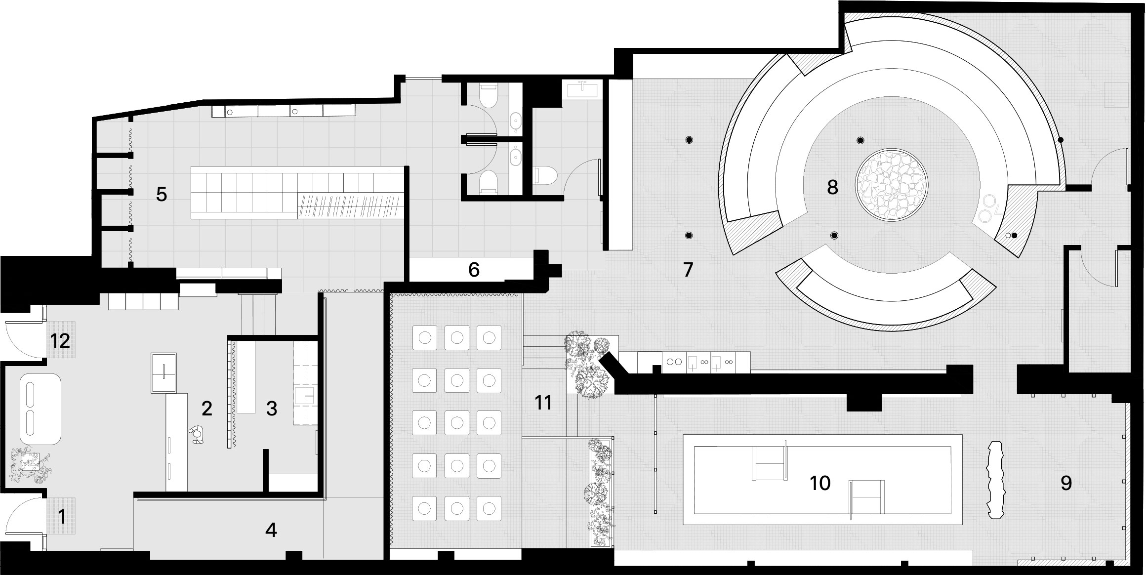 The design draws from ancient bathing traditions distilled into an elemental, contemporary vocabulary. To emphasize the rhythm of contrast, we divided the plan into complementary zones, each with distinct material palettes and atmospheres.